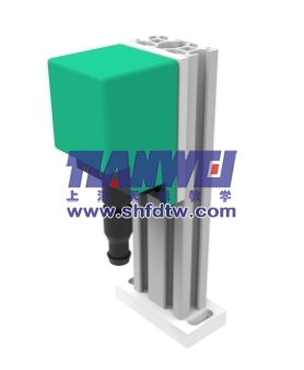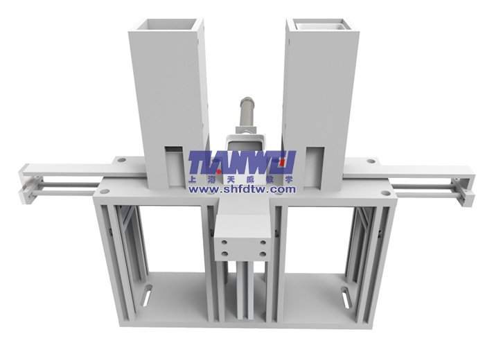 豎向輸送單元以三相交流電機為驅動,以氣缸為執(zhí)行機構。分別用作氣動擋料、物料入庫、物料夾緊、物料回收幾項功能。帶踢廢庫位與待入庫軌道,軌道下方帶有信息讀取模塊。如圖10所示,是豎向輸送單元的模型示意圖。