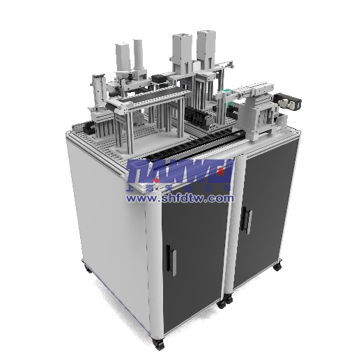 機械手搬運單元由伺服電機驅動控制,可以實現(xiàn)行程內的精準定位,同時使用多種氣缸(頂升氣缸、旋轉氣缸、雙軸氣缸、氣動手指)配合動作,實現(xiàn)物料對象的抓取、放置。