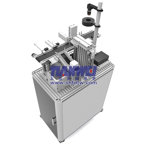 檢測工作站包含視覺檢測單元、上蓋裝配單元、豎向輸送單元等。在裝配工作站完成之后,機械手搬運單元將物料從橫向輸送單元轉移到豎向輸送單元上,經(jīng)過視覺檢測機構后,決定物料上蓋搬運入庫還是踢廢回收。