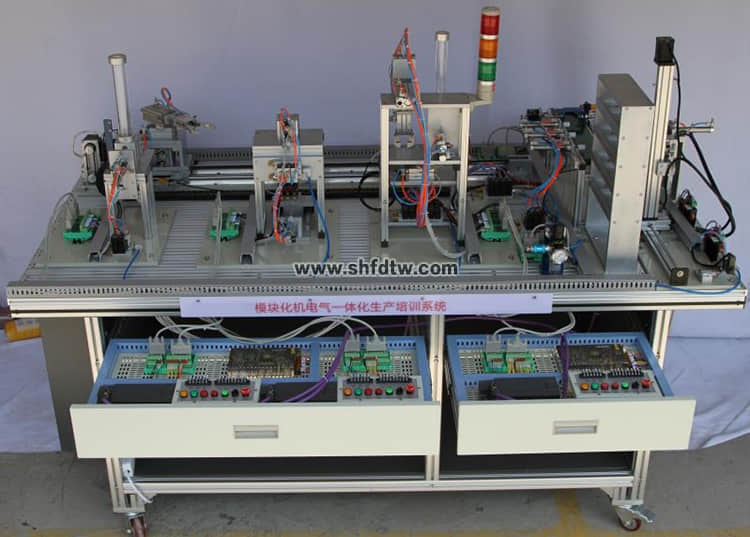 光機(jī)電實訓(xùn)裝置,由鋁合金導(dǎo)軌式實訓(xùn)臺、機(jī)電一體化設(shè)備部件、PLC模塊、變頻器模塊、按鈕模塊、步進(jìn)電機(jī)驅(qū)動模塊、電源模塊、接線端子排和各種傳感器等組成。其整體結(jié)構(gòu)采用開放式和拆裝式,學(xué)生可以自由組裝和調(diào)試送料檢測部件、物料搬運(yùn)部件、物料分揀部件和自動生產(chǎn)線等機(jī)電一體化設(shè)備;PLC模塊、變頻器模塊、按鈕模塊、步進(jìn)電機(jī)驅(qū)動模塊、常用裝置模塊等可任意調(diào)換和組合,進(jìn)行機(jī)電設(shè)備安裝與調(diào)試、PLC控制程序的編寫與運(yùn)行、變頻器調(diào)速系統(tǒng)的組裝與調(diào)試、PLC控制系統(tǒng)的安裝與調(diào)試、光機(jī)電一體化設(shè)備的組裝與調(diào)試等專業(yè)知識與技能的教學(xué)和實訓(xùn)。