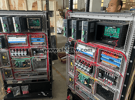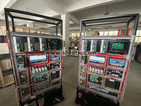 2.機(jī)床實(shí)訓(xùn)柜采用鐵質(zhì)亞光密紋噴塑結(jié)構(gòu),正面裝有數(shù)控系統(tǒng)和操作面板,背面為機(jī)床電氣柜,柜內(nèi)器件布局與實(shí)際機(jī)床廠的模式一致。電氣柜內(nèi)的電氣安裝板為網(wǎng)孔板,上面裝有變頻器、伺服驅(qū)動(dòng)器、交流接觸器、繼電器、斷路器、開關(guān)電源、接線端子排和走線槽等;電氣柜底部還設(shè)有變壓器和接地端子等。