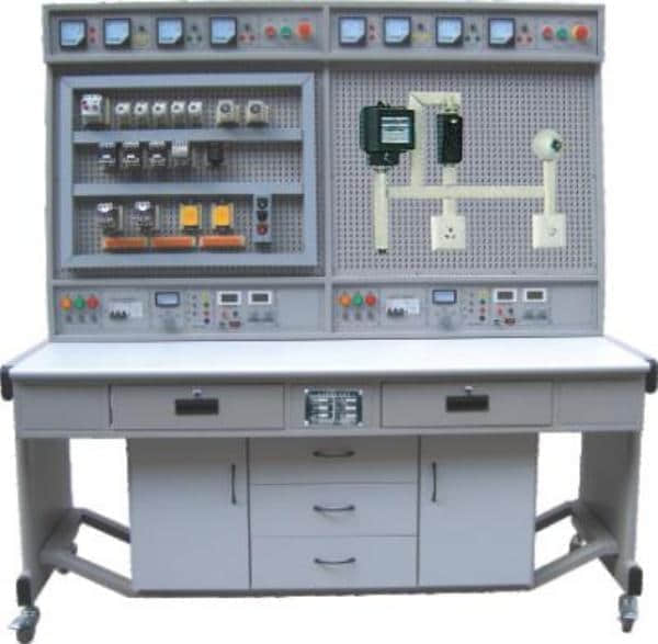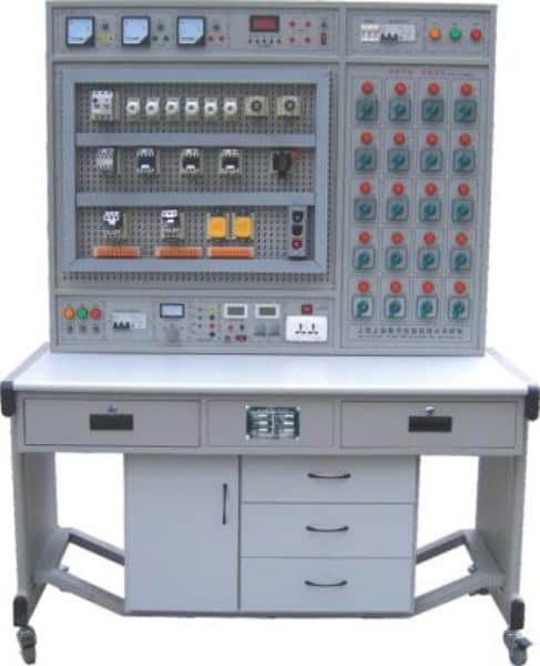 本裝置主要由實(shí)訓(xùn)桌、電源控制箱、實(shí)訓(xùn)元器件模塊、網(wǎng)孔板組成,網(wǎng)孔板表面均布“?”字網(wǎng)孔,元器件和走線槽等裝在特制的底座上,底座與網(wǎng)孔板相配套,實(shí)訓(xùn)時(shí)不需多人配合費(fèi)好多時(shí)間把元器件用螺絲逐個(gè)固定在網(wǎng)孔板上,僅需取出相應(yīng)的元器件模塊,在網(wǎng)孔板上選好位置一插一拉即可緊緊地固定在網(wǎng)孔板上,構(gòu)思巧妙,克服了一直以來(lái)圍繞所有廠家網(wǎng)孔板實(shí)訓(xùn)設(shè)備實(shí)訓(xùn)考核時(shí)所需的煩鎖的螺絲固定元器件的難題。元器件的合理安裝、線路的合理布局,全部由學(xué)生自行完成,有效培養(yǎng)學(xué)生的電工技能和工藝操作。添加元器件能完成大中專院校、職校、技校的《機(jī)床電路訓(xùn)練》、《電工技能訓(xùn)練》、《維修電工技能訓(xùn)練》、《電氣控制技術(shù)》等相關(guān)電工技能、電工儀表與測(cè)量課程實(shí)訓(xùn),也可作為電工考證的考核設(shè)備。