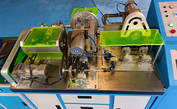 自動鉆床進給機構(gòu)模塊:可帶動自動鉆床實現(xiàn)進給、退刀等功能。主要由自動鉆床動力電機、圓柱凸輪機構(gòu)、燕尾槽滑動板、調(diào)節(jié)絲桿機構(gòu)、軸承座、直線導(dǎo)軌副、錐齒輪機構(gòu)等組成。可完成圓柱凸輪機構(gòu)、燕尾槽滑動機構(gòu)、直線導(dǎo)軌副等的裝配工藝及精度檢測實訓(xùn)。