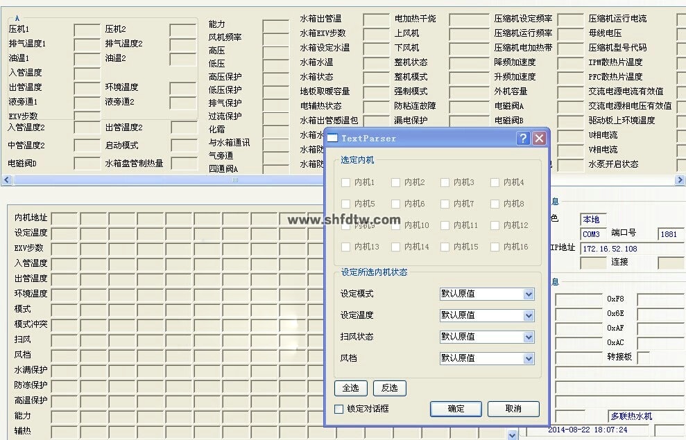 軟件可實(shí)現(xiàn)對內(nèi)機(jī)的控制,,可以對1-64臺內(nèi)機(jī)的狀態(tài)進(jìn)行設(shè)定。