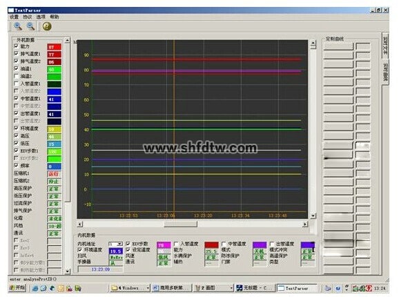 1、中央空調(diào)測試程序:中央空調(diào)機(jī)由于工程復(fù)雜,設(shè)備分散,有的已經(jīng)裝修在開花板上測試程序,一但出現(xiàn)了故障,工程量相當(dāng)大,為了能夠快速準(zhǔn)確地測出故障是由主機(jī)機(jī)組還是室內(nèi)機(jī)的故障的,每個(gè)生產(chǎn)廠家根據(jù)生產(chǎn)的和維修的需要而開發(fā)了中央空調(diào)測試程序??蓽y試壓縮機(jī)的運(yùn)轉(zhuǎn)頻率,傳感器的各種數(shù)據(jù),電子膨脹閥的工作步數(shù)等幾十種中央空調(diào)的工作數(shù)據(jù)和狀態(tài),軟件可實(shí)現(xiàn)對內(nèi)機(jī)的控制,,可以對1-64臺內(nèi)機(jī)的狀態(tài)進(jìn)行設(shè)定。是高校提供了好的研究的學(xué)習(xí)設(shè)備。