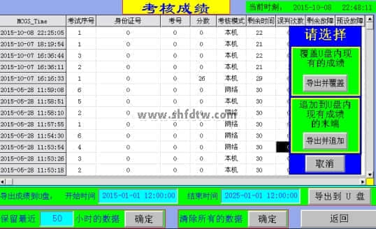 a. 教師模式下進(jìn)入“考核成績(jī)”頁(yè)面,可檢查歷次考核記錄。并可導(dǎo)出到U盤(pán)。