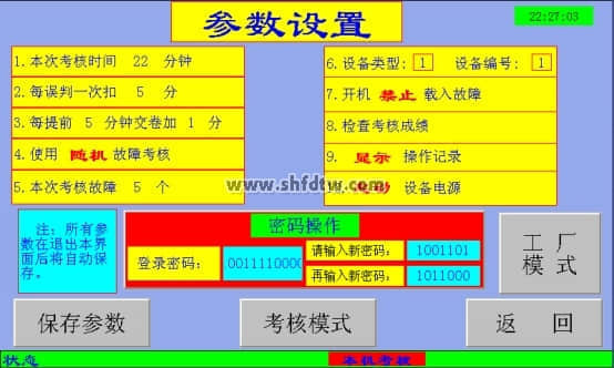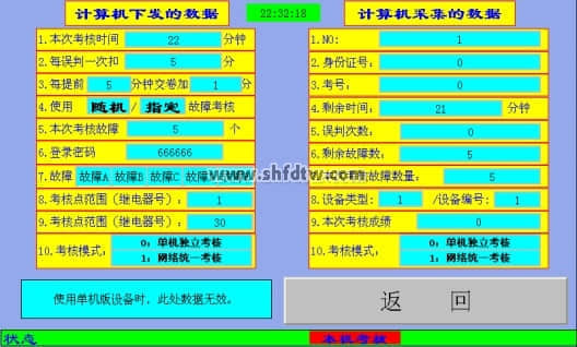 e. 如果設(shè)置的是隨機(jī)故障考核模式,則每次進(jìn)此頁(yè)面時(shí)系統(tǒng)都會(huì)重新隨機(jī)出題。