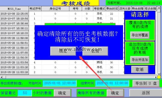 歷次考核成績(jī)都會(huì)保存在觸摸屏里。